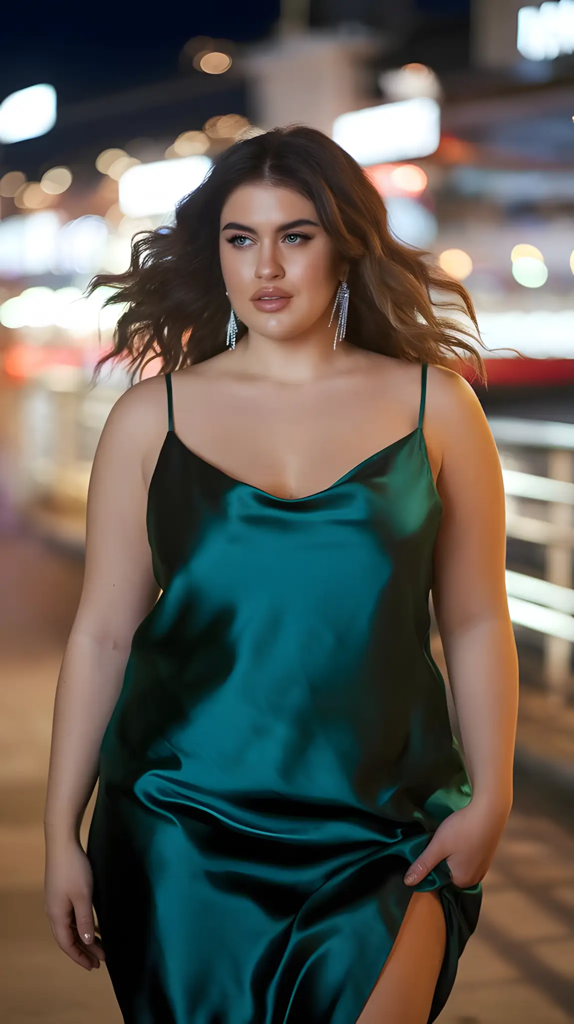 Satin. Sleek. Sexy. Slithers over your skin like liquid silk. Jazz club vibes—smooth music, smoother you. Strappy heels, a delicate necklace that glints in the dim light. Maybe a shawl for that cool night air. You’re not just glamorous; you’re captivating.